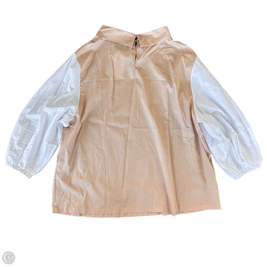 Tunic Long Sleeve By Hardhman In Tan & White, Size: 2x