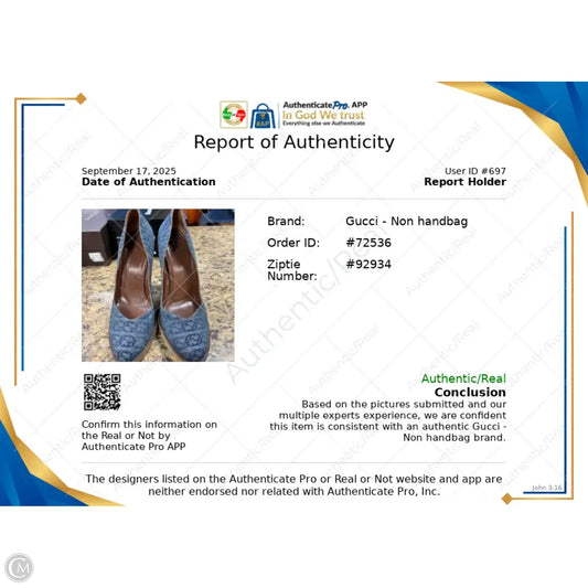 Shoes Luxury Designer By Gucci In Blue Denim, Size: 8.5