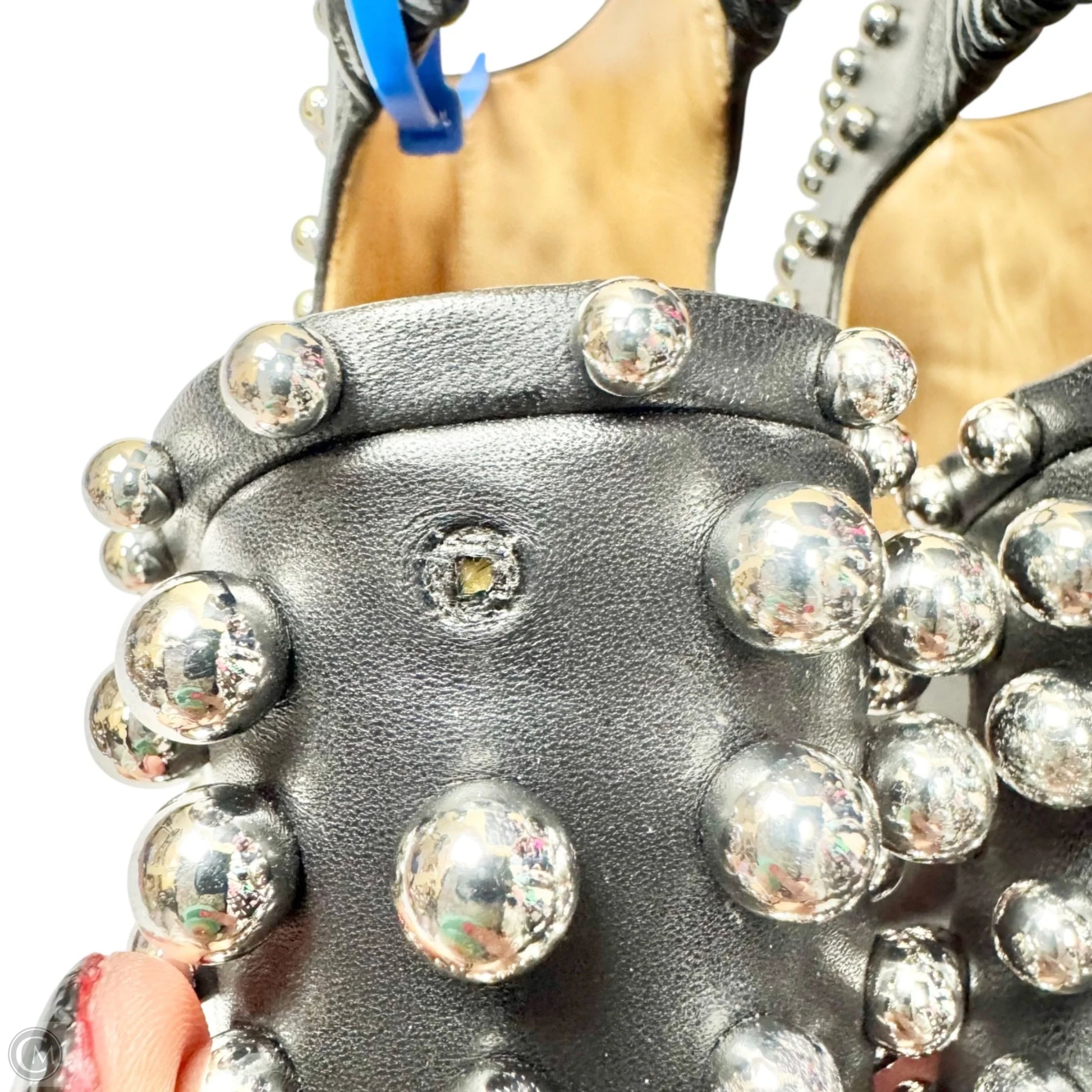 Boots Luxury Designer By Alexander Mcqueen In Black & Silver, Size: 8.5