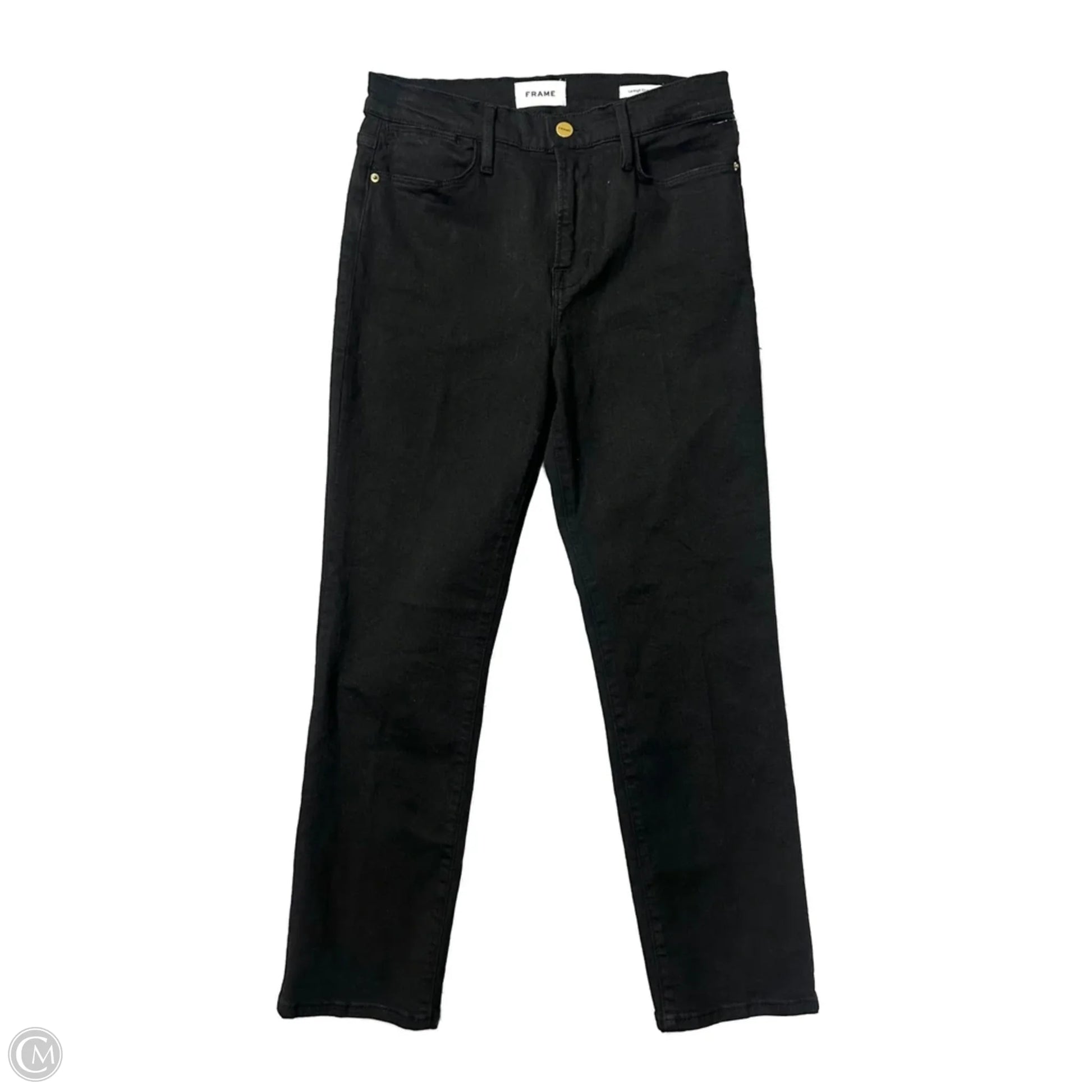 Jeans Straight By Frame In Black Denim, Size: 8