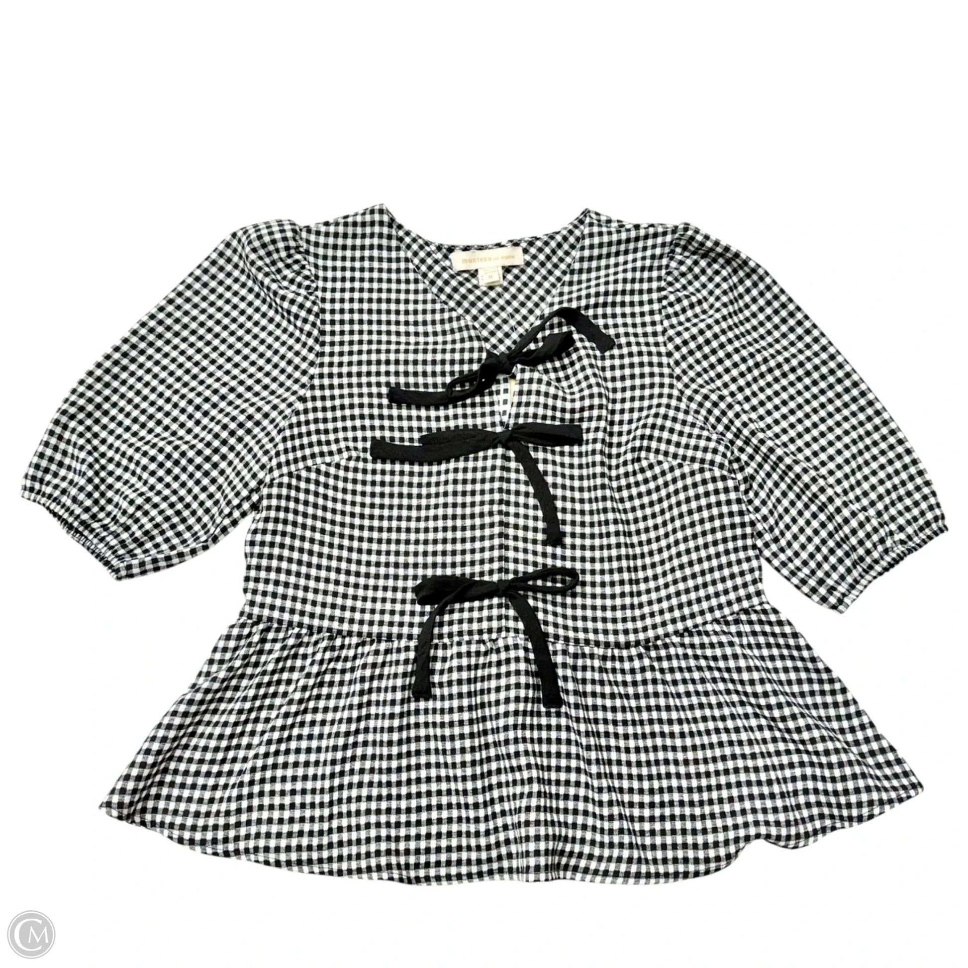 Top Short Sleeve By Monteau In Checkered Pattern, Size: M